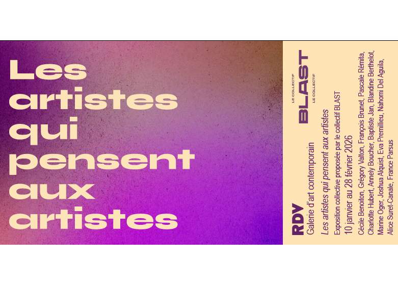 Les artistes qui pensent aux artistes est une proposition d’exposition qui vise à mettre en forme les enjeux sociaux-artistiques contemporains traversés au sein d’un collectif de sept plasticienn·e·s travaillant le dessin, la peinture, la photographie, la sculpture, la performance, la poésie. BLAST se réclame de pratiques hétéroclites, faites de subjectivités individuelles tendant vers l’émergence d’une subjectivité composite. Dans le cadre de ce projet, chacun·e des sept membres du collectif a invité un·e artiste, ancien·ne résident·e temporaire de BLAST, à associer leurs pratiques. Le temps d’une exposition à la galerie RDV, des duos éphémères se forment, dessinant alors les contours d’affinités esthétiques, intellectuelles, relationnelles, nécessaires au bon fonctionnement d’un collectif, et d’un lieu de partage qui accueille régulièrement des artistes en résidence, expositions, workshops, temps d’échanges.