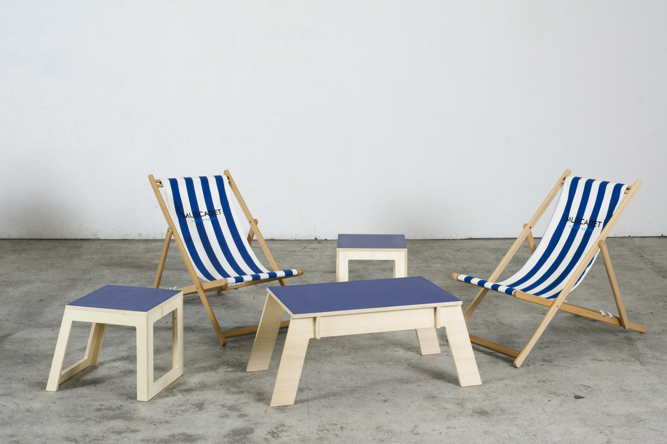 Pour accompagner cet été les déplacements du camion-bar de la Fédération des Vins de Nantes (Muscadet’truck), MilleFeuilles a conçu et réalisé une série de mobilier extérieur en contreplaqué : Manges-debout, chaises hautes, tables basses, banquettes-coffre (pour le rangement) et transats avec tissus et coussins brodés. L’ensemble est démontable et peut être facilement rangé !