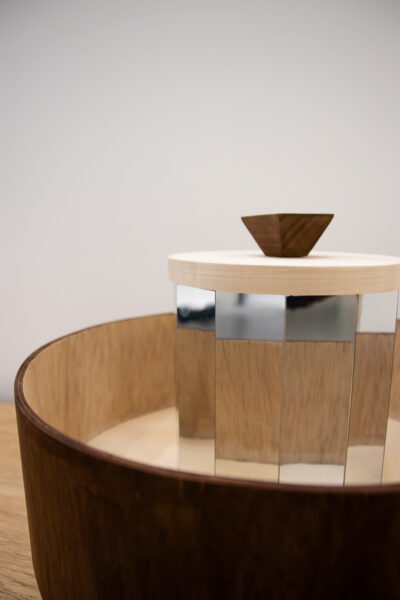 Pour l’exposition de l’autrice et dessinatrice Delphine Perret dans les bibliothèques de Montreuil, MilleFeuilles a conçu un praxinoscope de 350mm ce diamètre et de 300mm de hauteur, avec 12 miroirs – en contreplaqué de bouleau et bois massif sycomore (pied et poignée).