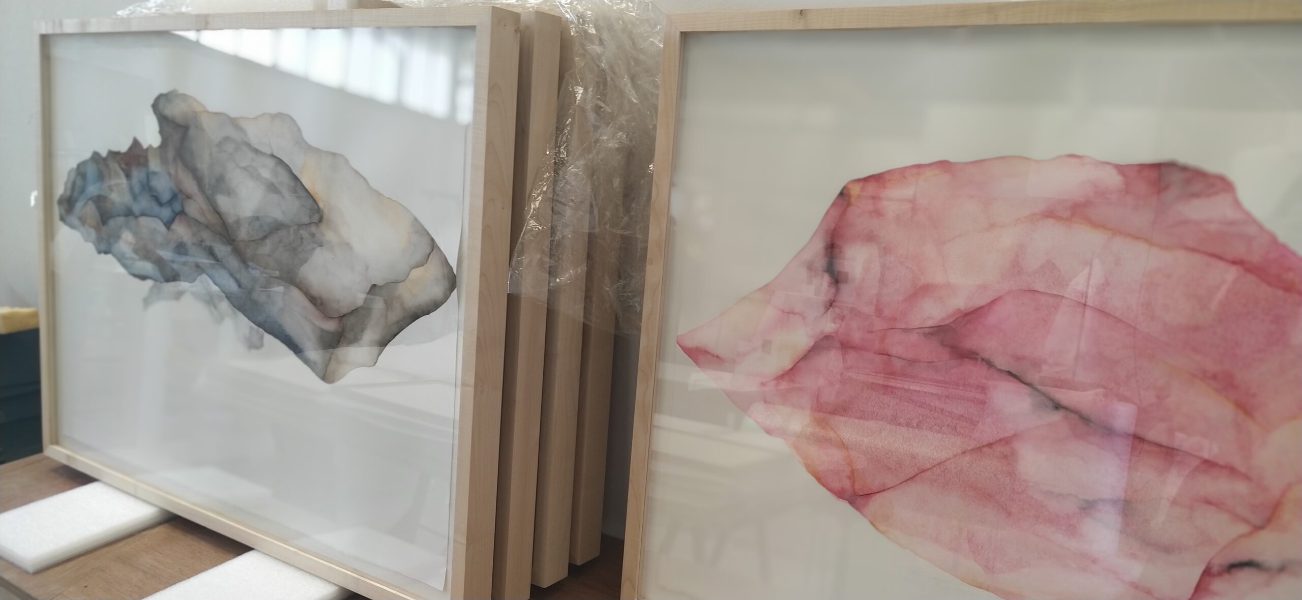 Dans le cadre d’une exposition au Château-musée de Tournon/Rhône, initialement prévue à l’été 2020, et reportée à l’année prochaine, l’artiste Patricia Cartereau est venue travailler à la fabrication de 35 encadrements moyen format et 7 encadrements grand format pour ses œuvres. Durant les différentes phases de découpe et d’assemblage, elle est accompagnée et assistée par l’équipe de production de MilleFeuilles.