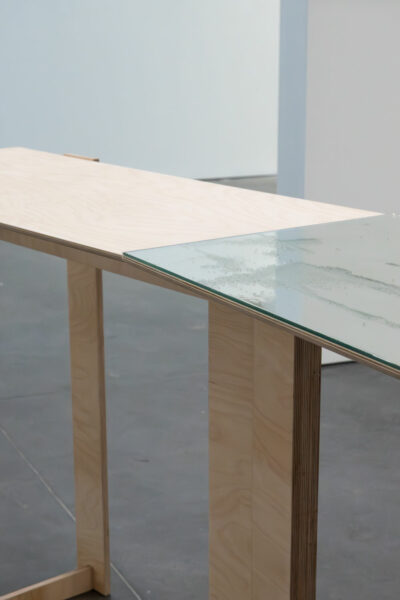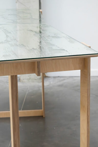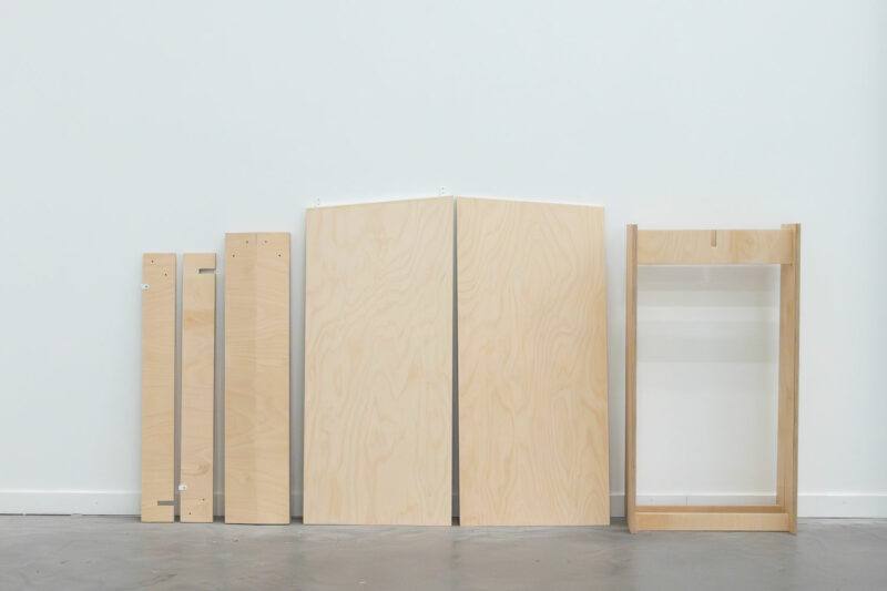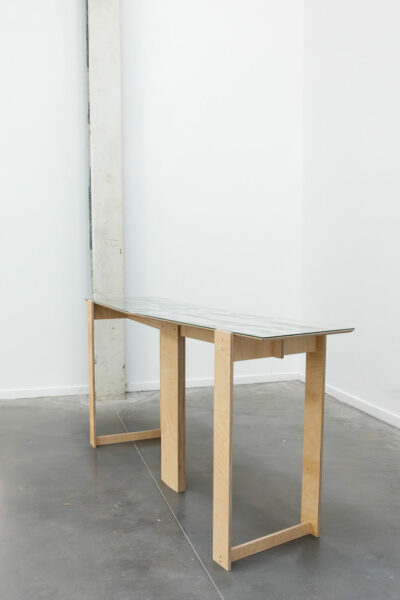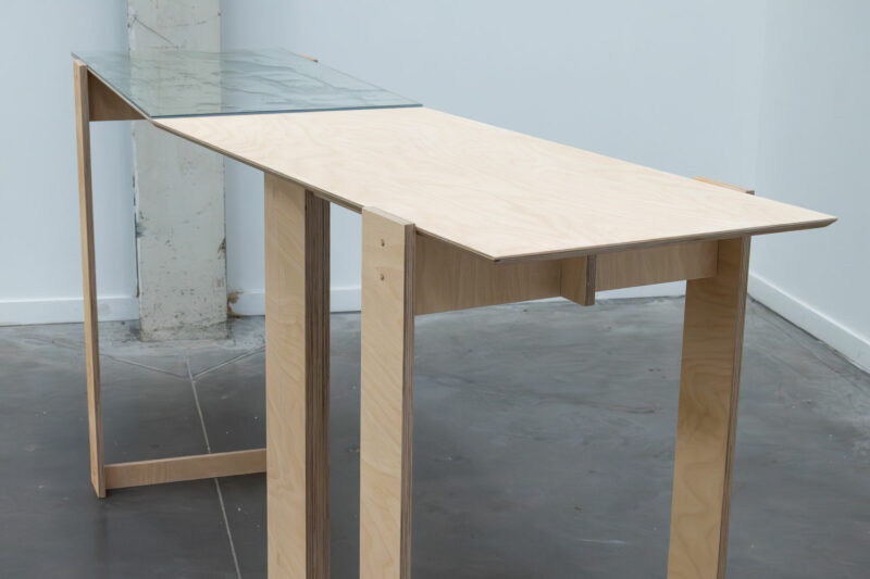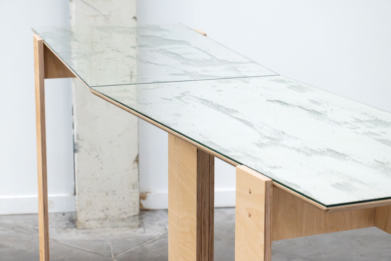 - Une table support de miroir démontable selon les plans fournis – Piètement et structure en contreplaqué de bouleau 15 mm