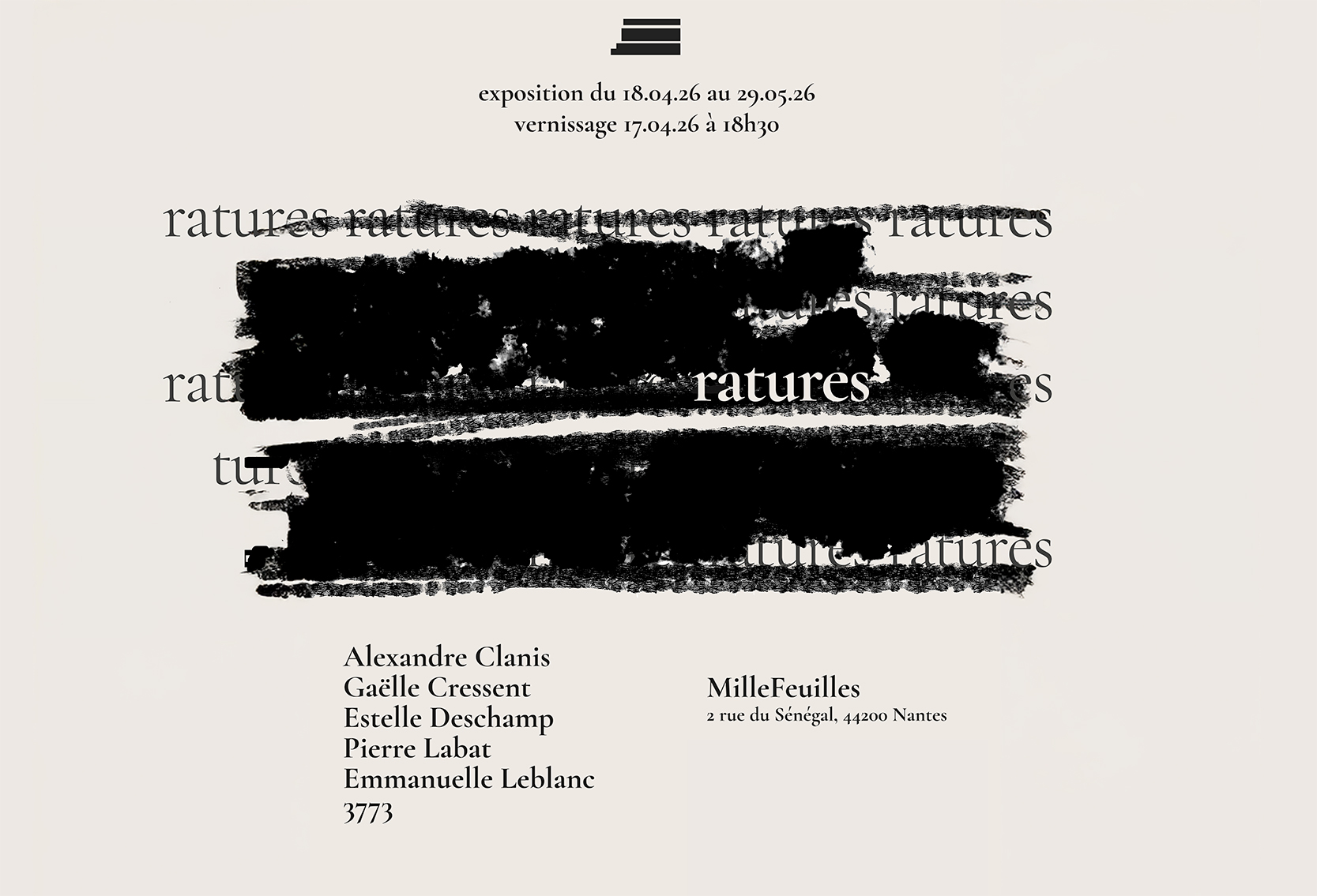 Inauguration de l’espace d’exposition de MilleFeuilles avec le Vernissage de ratures le vendredi 17 avril à 18h30